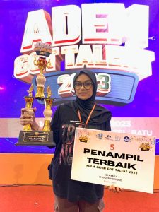 SMADEL – 15 Desember 2023, selamat kepada Nur Safikaain seorang siswi SMA WAHAS MODEL ADEM Repatriasi jatim yang berhasil lolos dan masuk 5 nominasi penampilan terbaik dari 25 peserta, di audisi ADEM GOT TALENT , yang di selengarakan di Ballrom Batu Suki Hotel, kota Batu pada tanggal 14-15 Desember 2023, dan akan mewakili ADEM Jawa Timur di tingkat naisonal.